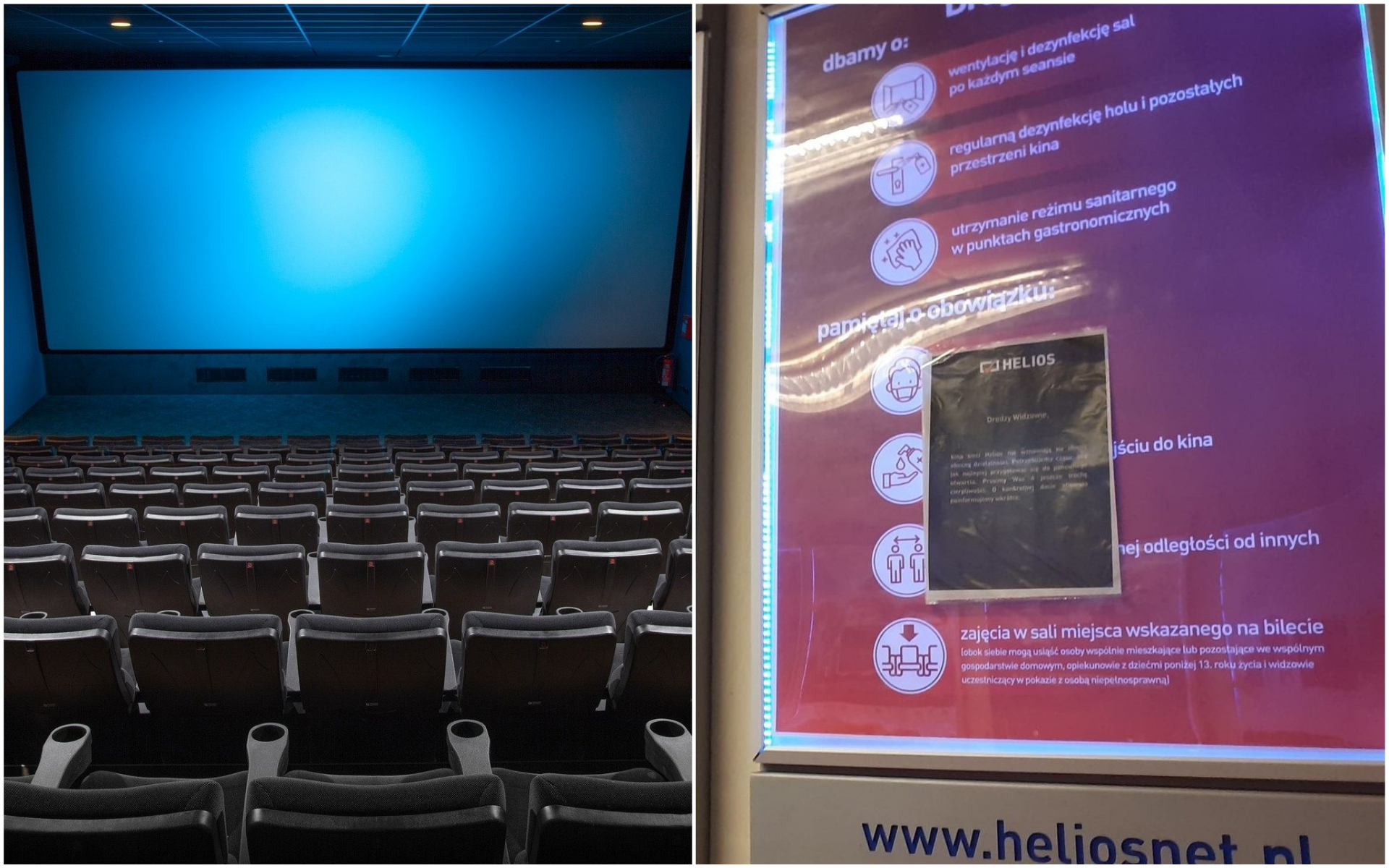 Wiadomo jednak, że otwarcia w piątek nie planuje kino Helios, które mieści się w galerii Wisła. Na profilu kina na FB czytamy: