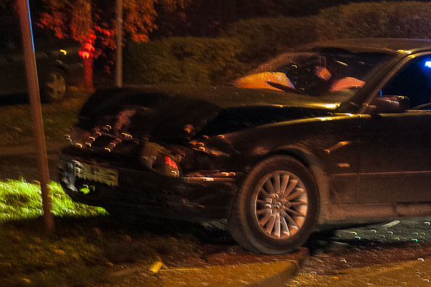 Czarne bmw z powiatu płockiego, chcąc uniknąć zderzenia z oplem corsą na rejestracjach z Grodziska Mazowieckiego, zjechało z jezdni i uderzyło w znak drogowy przy Chopina w pobliżu szkoły podstawowej nr 21. Na miejsce przyjechała policja i karetka pogotowia, na szczęście nikomu nic się nie stało.