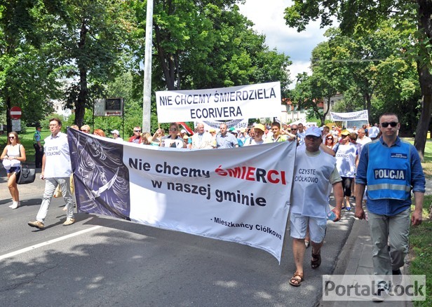 O protestach mieszkańców Ciółkowa w gminie Radzanowo w związku z działalnością firmy Ecoriver pisaliśmy już nieraz i wszystko wskazuje na to, że także i tym razem nie będzie to ten ostatni. Jak dotąd to właśnie mieszkańcy byli tą bardziej aktywną stroną we wspomnianym konflikcie. W swojej determinacji w walce ze stale wzrastającą falą smrodu we wsi i wobec nagłych zgonów dwójki dzieci, za którymi – zdaniem mieszkańców – stała zlokalizowana w Ciółkowie instalacja, przejechali także do Płocka najpierw protestować pod budynkiem starostwa powiatowego (które ostatecznie cofnęło zgodę na funkcjonowanie zakładu 15 lipca br.), później pod dopiero co otwieraną w towarzystwie vipów nową komendą policji. Także Wojewódzki Inspektor Ochrony Środowiska wydał 17 lipca decyzję nakazującą zamknięcie instalacji, ale dopiero od połowy stycznia 2015 roku.