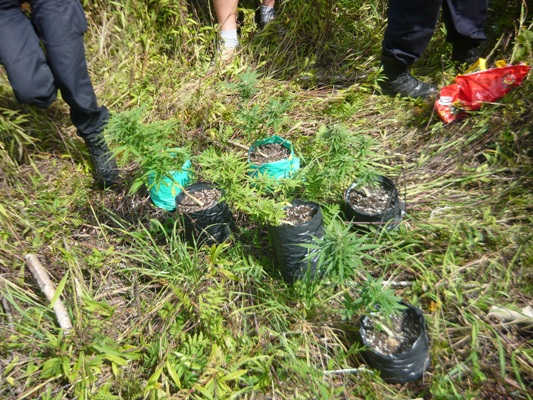 Około 50 metrów dalej strażnicy trafili na udeptany fragment ziemi, na którym prawdopodobnie również mogły być hodowane konopie. Po roślinach pozostała jednak już tylko ziemia oraz prowizoryczne doniczki.