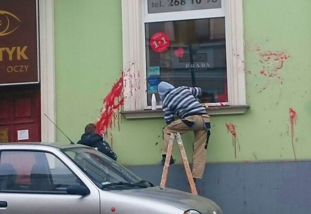 Rozbryźnięta czerwona farba na elewacji budynku, włamania, kradzieże - płoccy policjanci mieli w ten weekend pełne ręce roboty.