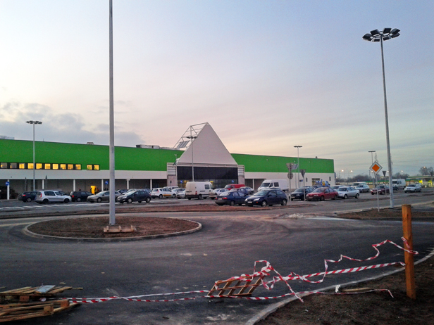 Nowy hipermarket o powierzchni handlowej liczącej blisko 12 tys. m kw. zajmie 5-hektarową działkę i ma być jednym z największych sklepów tej sieci w Polsce (największy, liczący prawie 18 tys. m kw. powierzchni handlowej znajduje się w Warszawie). Hipermarket zatrudnia 150 osób. Kolejne 50 pracuje w Decathlonie.