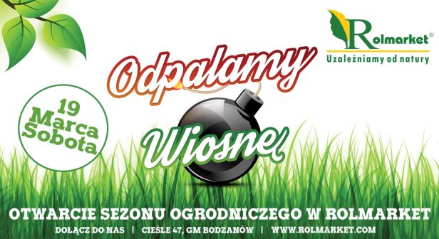 W sobotę 19 marca Centrum Ogrodnicze Rolmarket odpali wiosnę! W Cieślach pod Płockiem odbędzie się otwarcie sezonu ogrodniczego, podczas którego na klientów będzie czekało wiele atrakcji, m.in. promocje, konkurs z nagrodami, możliwość konsultacji z ekspertami z zakresu zakładania i aranżacji ogrodów, przekąski, bawialnia dla najmłodszych oraz kiermasz wielkanocny.