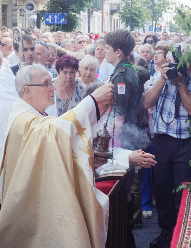 - Uwierzyła w obecność Jezusa, że to rzeczywista wiara w obecność Syna Bożego w Najświętszym Sakramencie – mówił metropolita. - Wyruszyliście dziś na ulice głosić Słowa Boże, patrzyliście na monstrancję i upadaliście na kolana w przekonaniu, że wśród nas jest obecny Bóg. Przy ołtarzu z eucharystią jest miejsce dla każdego, dziecka i dla 100-latka, znikają różnice między kobietami i mężczyznami, tu wszyscy jesteśmy równi. Będzie miejsce dla olimpijczyka i dla człowieka zmagającego się z kalectwem, dla laureaty nagrody Nobla i dla takiego, który nie potrafi czytać i pisać.