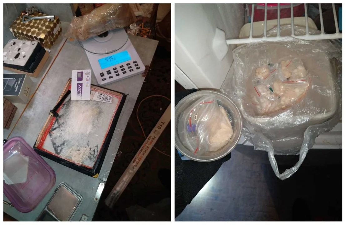 Część narkotyków znajdowała się w lodówce. Wstępne badania narkotestem potwierdziły, że zabezpieczone środki psychoaktywne są zabronione.