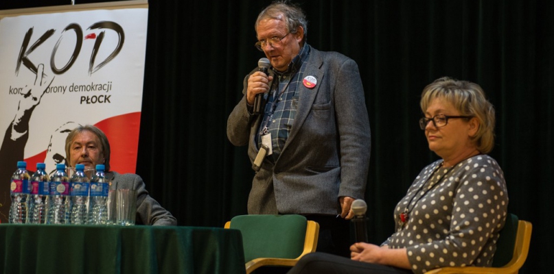 Prowadząca spotkanie Anna Lewandowska skwitowała: - To dopiero gorące powitanie. Wszyscy już wiecie, kim jesteście – zwróciła się do obecnych dziennikarka płockiej "Gazety Wyborczej", po czym przedstawiła gościa, który przyjechał na zaproszenie płockiego Komitetu Obrony Demokracji. - Oto najczarniejszy charakter, którym straszono dzieci. Nieznajome nam siły rozkleiły w mieście nalepki z listem gończym. Kim jest ta straszna postać, ten zdrajca ojczyzny, który 13 grudnia został internowany. Siedział w więzieniu i wciąż stoi komuś kością w gardle?