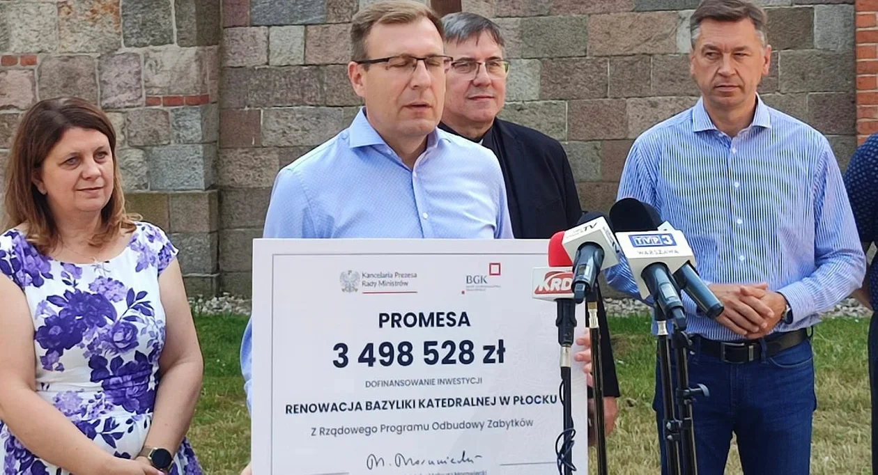 Jak podkreślano podczas spotkania z dziennikarzami, to już kolejne rządowe wsparcie, które zostało przekazane na rewitalizację najbardziej charakterystycznej płockiej świątyni. Promesę, symboliczny czek na prawie 3,5 mln zł, przekazał obecny w Płocku Maciej Małecki, wiceminister aktywów państwowych.