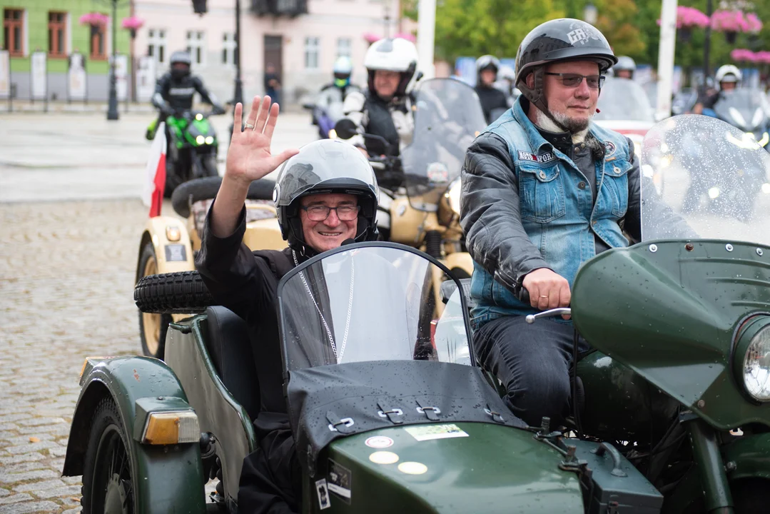 Mimo burzy i deszczu na płockiej starówce zaparkowało wiele jednośladów. Ich właściciele chcieli uczestniczyć w tym historycznym, pierwszym w diecezji wydarzeniu.