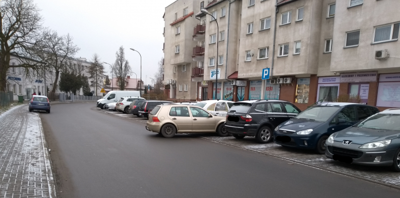 Dziś rano na ul. Gradowskiego kierowcy omijali auto, którego część wystawała na jezdnię. Kierowca musiał się wyjątkowo spieszyć, bo nie zdążył podjechać do końca miejsca parkingowego.