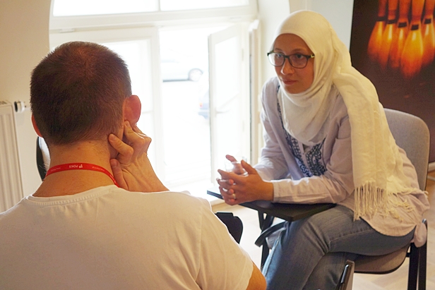 Ponownie rozgościła się u nas muzułmanka Lubna. Ma mamę Polkę, jej ojciec pochodzi z Iraku. To lekarka, robi specjalizację z chirurgii ogólnej. - Jesteśmy w MŻM, w dawnej synagodze, a Lubna po prostu podeszła do mnie z pytaniem, czy mogłaby się pomodlić – opowiadała Katarzyna Królikowska, współorganizatorka „Żywej Biblioteki”.