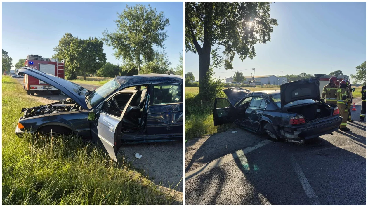 24-latek stracił panowanie nad BMW, wypadł z drogi do rowu, a następnie zatrzymał się częściowo na jezdni. Mężczyzna został przewieziony do szpitala.