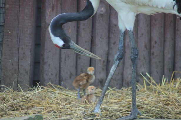 Ciekawostką jest fakt, że samice żurawia mandżurskiego składają zwykle dwa jaja, ale wykluwa się z nich tylko jedno młode. W Płocku tymczasem na świat przyszły dwa młode ptaki.