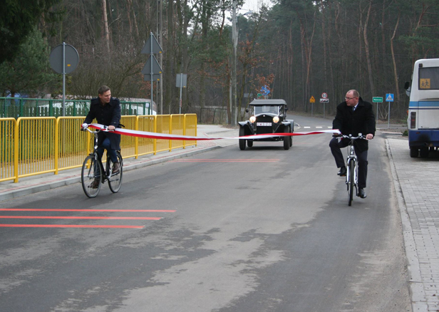 Mieszkańcy, radni i władze gminy z wójtem Słupna na czele uczestniczyli w uroczystym otwarciu przebudowywanej od miesięcy drogi. Przecięcia przywiezionej przez Marcina Zawadkę i radnego Janusza Szenka na rowerze wstęgi podjęli się uczniowie pobliskiej podstawówki.