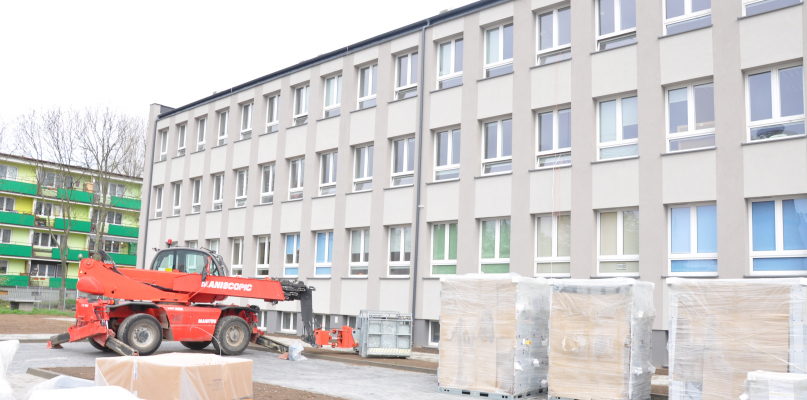 Aktualnie trwają prace wykończeniowe takie jak wymiana posadzek, montaż drzwi, szpachlowanie ścian i sufitów. Większość jest już ukończonych w 90%. Zakończona za to jest termomodernizacja budynku.
