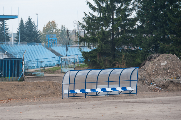 Boisko o powierzchni 5,3 tys. m kw. jest już gotowe, wyposażono je w instalację nawadniającą i drenaż jodełkowy, a także w instalację elektryczną pod przyszłe oświetlenie (bez masztów). Są już także bramki, łapacze do piłek oraz wiaty stadionowe z ławkami rezerwowych. Ale ponieważ zamiast rozwijanego dywanika zasiano trawę, teraz trzeba czekać do wiosny, aż boisko zazieleni się trawą.