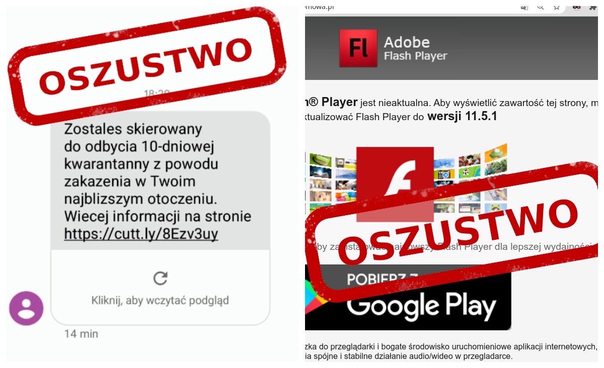 - Ostrzegamy przed zmasowaną kampanią SMS-ową nakłaniającą pod pretekstem skierowania na kwarantannę domową albo znalezionego portfela do instalacji aktualizacji Flash Playera na system Android. W rzeczywistości to trojan bankowy Cerberus. Uważajcie i podajcie dalej! - podaje CERT Polska, zespół powołany do reagowania na zdarzenia naruszające bezpieczeństwo w sieci.