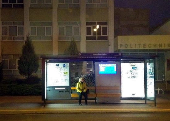 Fot. podświetlana tablica na przystanku przy Politechnice