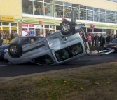 Wczoraj na skrzyżowaniu Kobylińskiego, Jachowicza i Bielskiej zderzyły się lanos i peugeot partner. Jak już pisaliśmy, zdarzenie wyglądało groźnie, a siła uderzenia była tak duża, że przewrócony na dach peugeot leżał kilkaset ładnych metrów dalej za skrzyżowaniem. Na szczęście nikomu nic się nie stało.
