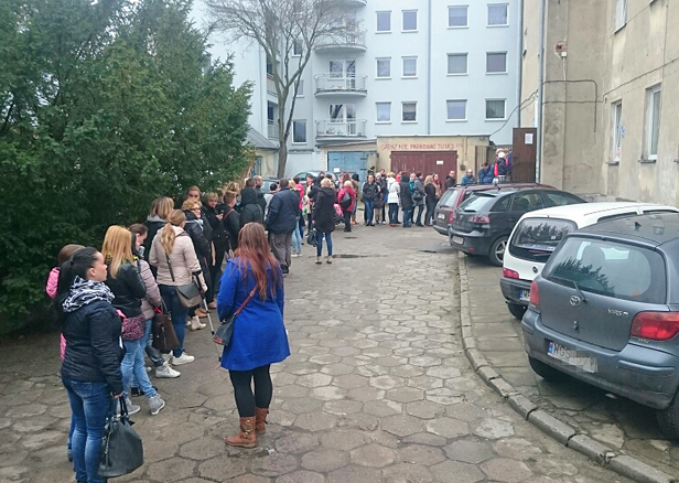 Kolejka przed budynkiem, ludzi przybywa i przybywa