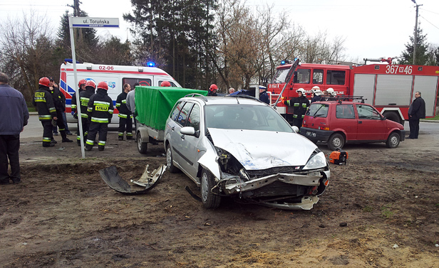 Nasze informacje o wypadku w Brudzeniu Dużym potwierdza rzecznik płockiej policji Krzysztof Piasek, od razu uspokaja jednak, że na szczęście wszystko tylko wyglądało groźnie. Okazało się, że ok. godz. 10.00 kierująca oplem corsą 41-letnia mieszkanka powiatu płockiego, skręcając w lewo nie ustąpiła pierwszeństwa przejazdu i zderzyła się z jadącym z naprzeciwka fordem focusem kierowanym przez 55-letniego mieszkańca powiatu płockiego. Siła uderzenia była tak duża, że corsa uderzyła w zaparkowane nieopodal cinquecento. - Ponadto w oplu ze względu na wyciek płynów eksploatacyjnych na rozgrzany kolektor wydechowy pojawiło się zadymienie i potrzebna była pomoc strażaków - mówi Krzysztof Piasek. - Strażacy zadziałali błyskawicznie i szybko opanowali sytuację.