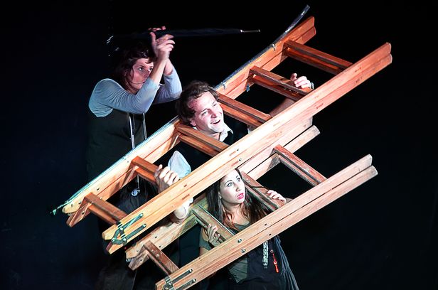 Anna Kaźmierowska, Joanna Stanowska i Mariusz Pogonowski mają do dyspozycji zaledwie kilka rekwizytów, między innymi wiadro czy drabinę. Okazuje się to jednak jednym z największych atutów spektaklu, który jest pokłonem dla nieograniczonej wyobraźni każdego człowieka. Drabina może wyobrażać samolot, schody, wieżowiec.
