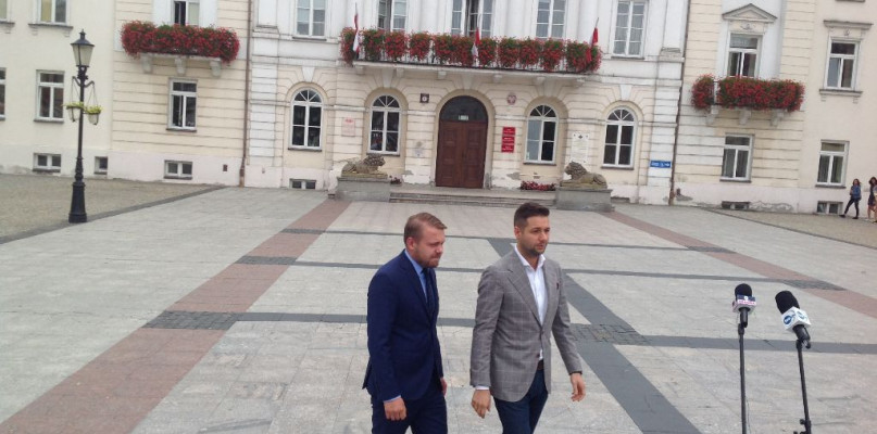 W poniedziałek krótką konferencję prasową przed płockim ratuszem zorganizowali politycy Prawa i Sprawiedliwości: europoseł Patryk Jaki oraz radny miasta Warszawy, prawnik, kandydat do Sejmu z okręgu płocko-ciechanowskiego Jacek Ozdoba.