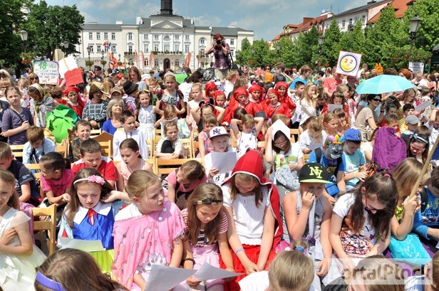 - Czy wszyscy już wiedzą, że w 2014 roku przypada 777. rocznica lokacji Płocka? – zapytał prowadzący ożywionych postaci z bajek. – Z tej okazji spróbujemy pobić rekord. W zeszłym roku było nas 256 osób, policzmy ile w tym roku – i zaczął odczytywać listę obecności według szkół. Szybko okazało się, że kilku przedszkoli i podstawówek zabrakło. – Skoro jeszcze nie dotarli, to albo leżakują, albo mają bardzo krótkie nóżki i z pewnością zaraz przyjdą – zażartował i przedstawił gości ustawionych już na scenie.