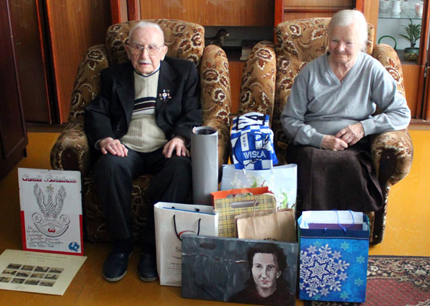 Życzenia dla kombatanta przesłali do naszej redakcji również prezydent Płocka Andrzej Nowakowski i senator RP Marek Martynowski, albumy ofiarowali mu m.in. radny Michał Sosnowski i członkowie Stowarzyszenia Historycznego im. 11. Grupy Operacyjnej NSZ. Upominki przekazali również płoccy kibice. A jeden z inicjatorów akcji namalował piękny portret Inki, czyli Danuty Siedzikówny, 17-letniej ofiary represji stalinowskich na żołnierzach podziemia niepodległościowego.