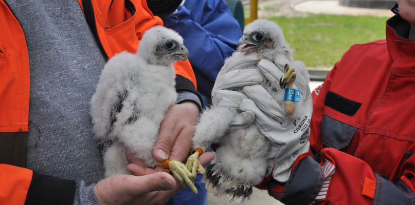 Na terenie płockiego kombinatu wychowało się już 45 sokołów wędrownych, a właśnie zaobrączkowano dwa kolejne - samicę i samca. Dzięki temu będzie można śledzić ich dalsze losy.