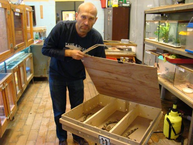 Skrzynia została zabezpieczona przy pomocy specjalnych wkrętów, aby nie otworzyła się w trakcie transportu. Znalazło się na niej specjalne oznaczenie, informujące, że wewnątrz wewnątrz znajdują się żywe zwierzęta, a konkretnie gady.