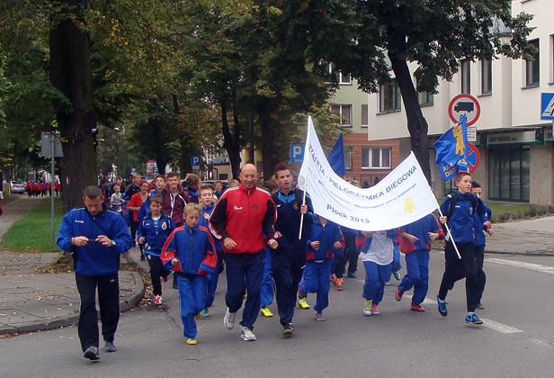 Pielgrzymka biegowa wyruszyła również z Płocka, wczoraj odbył się bieg inaugurujący Sztafetę. Kilkadziesiąt osób, głównie uczniów gimnazjum, z przewodnikiem pielgrzymki, czyli Leszkiem Brzeskim, płockim radnym i wicedyrektorem Siedemdziesiątki na czele, przebiegło od Sanktuarium Bożego Miłosierdzia potem Grodzką, dalej Kościuszki, 1 Maja oraz Al. Jachowicza na Stanisławówkę do pomnika bł. ks. Popiełuszki.