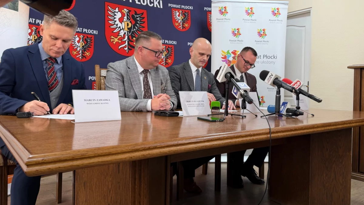 Podczas wtorkowego spotkania podpisano list intencyjny. Dokument parafowali: starosta płocki Sylwester Ziemkiewicz, wójt gminy Radzanowo Piotr Jakubowski oraz wójt gminy Słupno Marcin Zawadka, w obecności Marcina Błaszczaka, dyrektora Zarządu Dróg Powiatowych.
