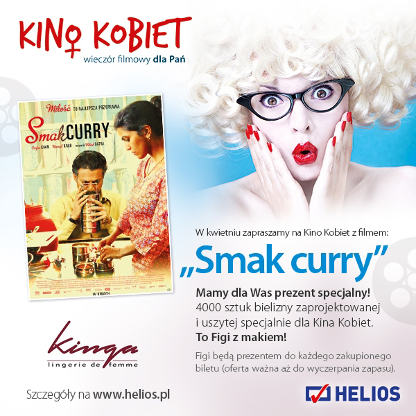 Tym razem wieczór zakończy się pokazem filmu "Smak curry" z 2013 r. Indyjsko-francusko-niemiecko-amerykańska produkcja opowiada historię skutków kulinarnej pomyłki dla dwojga obcych sobie ludzi. Jak czytamy w filmowych zapowiedziach, Ila, wciąż młoda i piękna gospodyni domowa, postanawia dodać trochę koloru swemu bezbarwnemu małżeństwu - zgodnie z maksymą "przez żołądek do serca". Kobieta ma wielką nadzieję, że nowa potrawa, której smak doprowadziła do doskonałości, przyspieszy bicie serca jej wiecznie nieobecnego męża. Specjalna przesyłka z jedzeniem, wysłana do niego do biura, przez pomyłkę trafia w ręce innego mężczyzny. Podejrzewając, że ktoś obcy zjada przygotowane przez nią posiłki, następnego dnia Ila wkłada do przesyłki nie tylko obiad, ale też liścik. Wieczorem dostaje od nieznajomego odpowiedź. Tak rozpoczyna się pełna subtelnych emocji historia dwojga ludzi, pragnących nadać życiu odrobinę smaku. Jednym słowem: film w sam raz na zakończenie babskiego wieczoru.