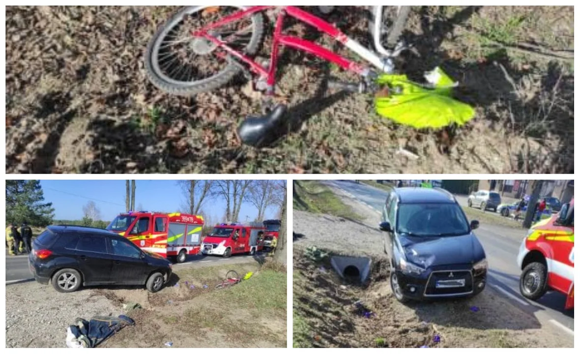 Rowerzysta z ciężkim obrażeniami został zabrany do szpitala przez załogę Lotniczego Pogotowia Ratunkowego.