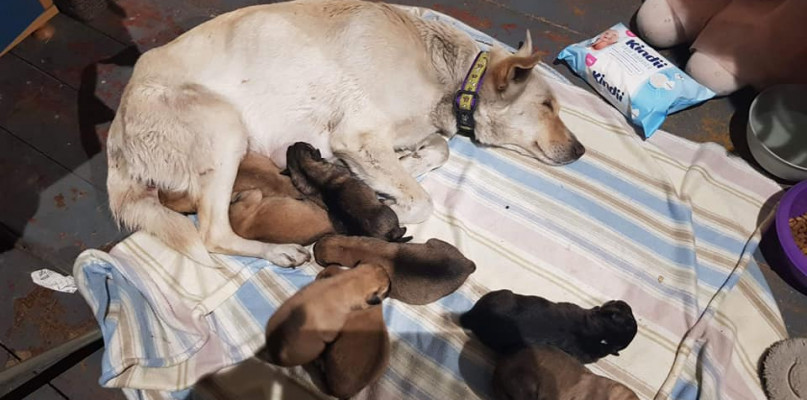 Maluchy były wyziębione, a oni zastanawiali się, co począć. Jedna z wolontariuszek usłyszała jęk malucha. - W akcie desperacji wymeldowała syna z jego pokoju i przeznaczyła go dla dzikiej suki i jej szczeniąt. Fakt, iż zwierzę było bardzo nieufne, niczego nie ułatwiał. Weterynarz obejrzał szczeniaki, ogrzał je w inkubatorze, a sukę zalecił obserwować. Stan Belli zaczął się jednak pogarszać. Traciła mleko, nie pozwalała dokarmiać szczeniaków, a finalnie odrzuciła je..... Siedem mordek do wykarmienia co dwie godziny plus ich wypróżnianie i ogrzewanie. Na szczęście po paru dniach dokarmiania, szczeniaki trafiły pod opiekę innej fundacji, która miała możliwość, a przede wszystkim ogromne doświadczenie w odchowaniu takich osesków i to w takiej ilości.