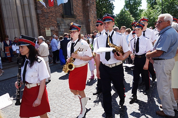 Skwar był przeogromny. Niektórzy chronili się pod parasolami, inni szukali cienia pod drzewami. Tradycyjnie szła orkiestra, dziewczynki w strojach z pierwszej Komunii Świętej sypały kwiatkami z koszyczków. Jedna pani nawet niosła ze sobą na wszelki wypadek stołek.