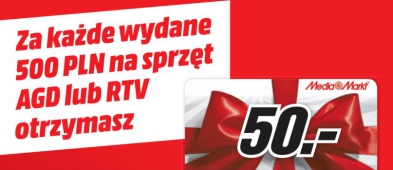 Nosisz się z zamiarem kupna telewizora? A może aparatu fotograficznego, mikrofalówki albo pralki? Media Markt podpowiada, że najlepiej jeszcze dziś, a najpóźniej jutro, zrobić te zakupy w sieci sklepów. Dlaczego? Bo tylko do 30 września w sklepie trwa promocja, zgodnie z którą za każde wydane 500 zł na sprzęt AGD RTV klient otrzyma 50 zł na kartę podarunkową. Można w ten sposób zaoszczędzić sporo grosza.