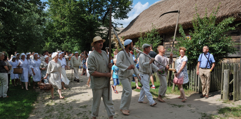 Ponadto, jak dodaje, w wiejskiej izbie szkolnej wykonają słomiane ozdoby. Usiądą też do koła garncarskiego z garncarzem. Na terenie ekspozycji artyści z Regionalnego Zespołu Pieśni i Tańca BOCZKI CHEŁMOŃSKIE z Kocierzewa k. Łowicza zaprezentują barwne widowisko obrzędowe pt. „Żeńcy”, na które złożą się uroczyste wyjście w pole, koszenie, stygowanie i wspólny posiłek.