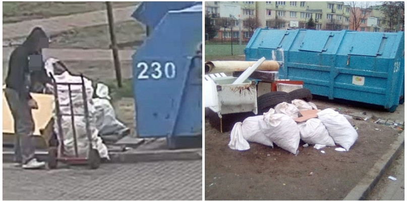 Niedawno była sytuacja z wyrzucanymi oponami - wówczas sprawcę nagrała fotopułapka. Tym razem kamera przyłapała mężczyznę, który podrzucił gruz w workach przy ul. Skłodowskiej.