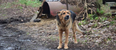 Dużemu mieszańcowi trafił się tak krótki łańcuch, że nie zdołał zyskać schronienia w metalowej beczce. - Brodził w błocie i odchodach, a my, próbując go uwolnić, zapadaliśmy się w tym bagnie. On, tak samo jak suczka, miał mocno powiązany łańcuch na szyi sznurkiem, który także trzeba było przecinać, by go uwolnić. Tak mocno rwał się na wolność... by móc w końcu swobodnie się przejść. Gdy już był wolny, każdy krok sprawiał mu ogromną radość.