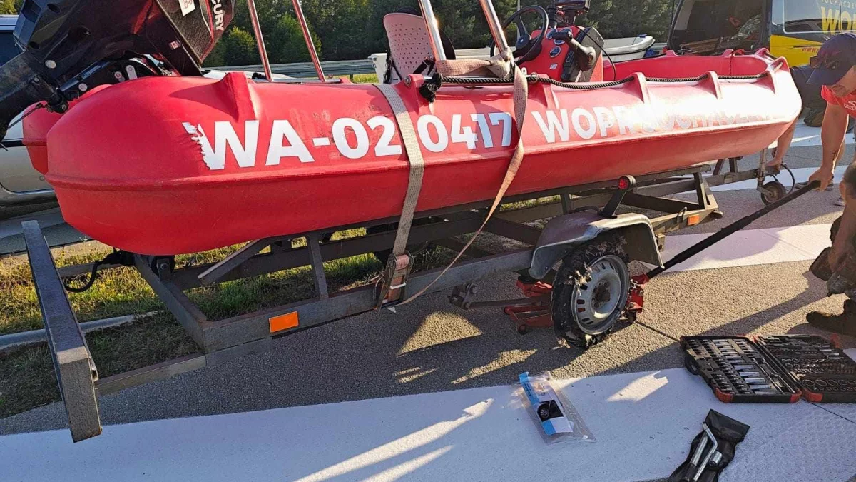 - Na autostradzie doszło do rozerwania opony w jeden z przyczep transportujących łódź ratowniczą. Znaleźliśmy się w sytuacji mało komfortowej...