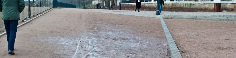 Kilka dni później padał deszcz. Poszliśmy, sprawdziliśmy. Rzeczywiście - spacerowicze dużo chętniej obchodzili błotnisty plac niż po nim spacerowali... Czy Waszym zdaniem należałoby poprawić nawierzchnię w tym reprezentacyjnym miejscu?