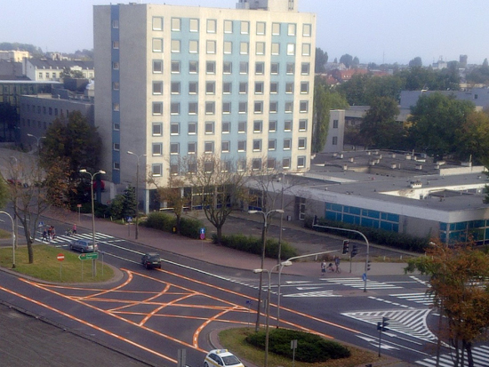 - przesuniecie przejścia dla pieszych na wlocie zachodnim w stronę środka skrzyżowania,