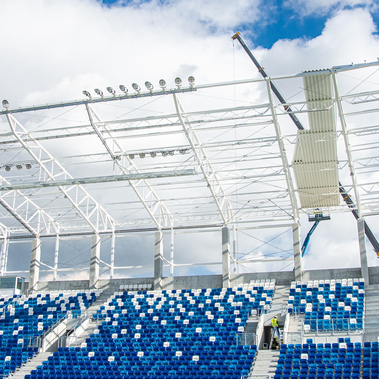 - Pierwotny harmonogram zakładał, że odebranie trybuny wschodniej pozwalało nam zacząć prace w trybunie zachodniej. Ukłon ze strony PZPN-u zezwolił nam na wejście na znaczną część trybuny zachodniej i południowej, żeby nie czekać na dostawę blachy - wskazuje Artur Zieliński. - Jeszcze w tym roku kibice zasiądą na trybunie wschodniej.