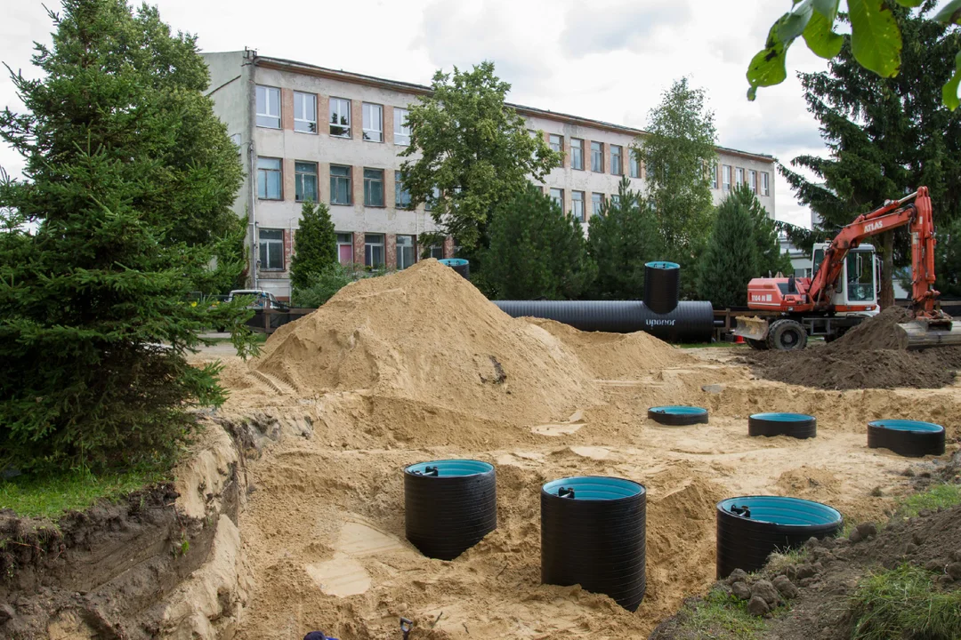 Co ciekawe, powstające tam zbiorniki retencyjne kanalizacji deszczowej będą buforem regulującym dopływ deszczówki do miejskiej sieci. - Wodę z nich będzie można też wykorzystać do podlewania zieleni, rosnącej wokół szkoły – usłyszeliśmy w urzędzie.