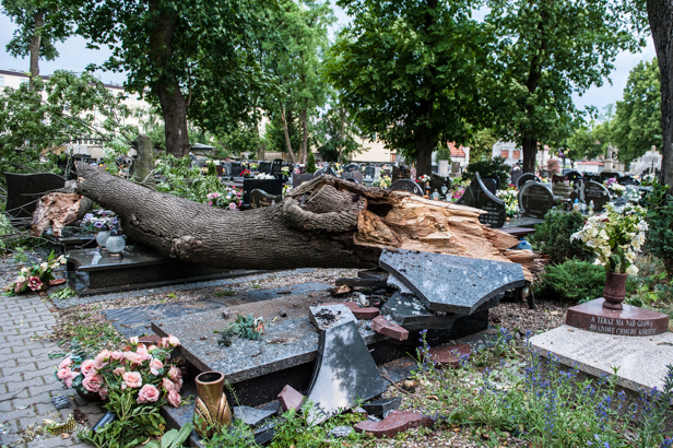 Nawałnica, która w piątek wczesnym popołudniem przeszła nad Płockiem, zostawiła po sobie nie tylko uszkodzone samochody, na które zwaliły się grube konary drzew, nie tylko zerwane linie energetyczne, ale zniszczyła sporo grobów na zabytkowym cmentarzu przy Kobylińskiego.