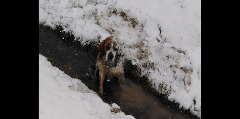 Śnieg i niska temperatura to koszmarne warunki nie tylko dla osób bez stałego dachu nad głową. To samo dotyczy naszych czworonożnych towarzyszy, psów i kotów, które żyją na ulicy i szukają schronienia, suchego kąta i czegoś do zjedzenia. Akurat ten bernardyn, błąkając się w pobliżu obwodnicy, wpadł do rowu. Sam nie mógł się wydostać, miał jednak to szczęście, że z czasem znalazły się osoby gotowe mu pomóc w psiej niedoli.