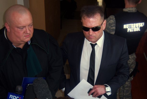 W środę rano Włodzimierz Olewnik ze swoim pełnomocnikiem spokojnie czekali na kolejną rozprawę (poprzednie były w maju i czerwcu), Rutkowski wpadł do sądu z pełnomocnikiem oraz ochroniarzem, ubranym w moro i nazwą firmy detektywa.