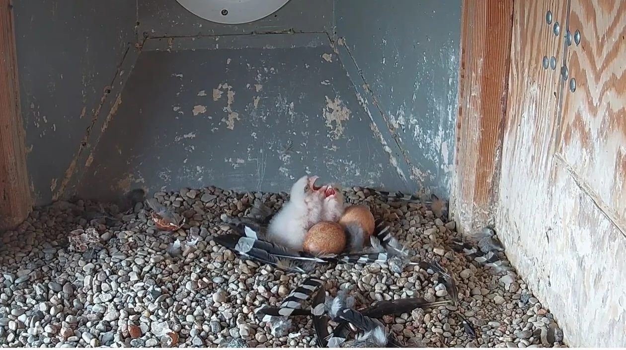 Pierwsze pisklę wykluło się w czwartek 21 kwietnia, drugie zaś dziś - w piątek 22 kwietnia. To potomstwo Werwy i Rafika, ptaków mieszkających na kominie Instalacji Odsiarczania Spalin w PKN Orlen. Sokoły od jakiegoś czasu wysiadywały cztery jaja.