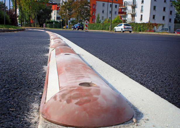 Na razie szeroką na ok. 1,5 m drogę dla rowerów wydzielono dla obu kierunków ruchu, po dwóch stronach Armii Krajowej, ale tylko po wewnętrznej stronie ulicy położono solidne separatory oddzielające jezdnię od ścieżki. Po drugiej stronie nie będzie?